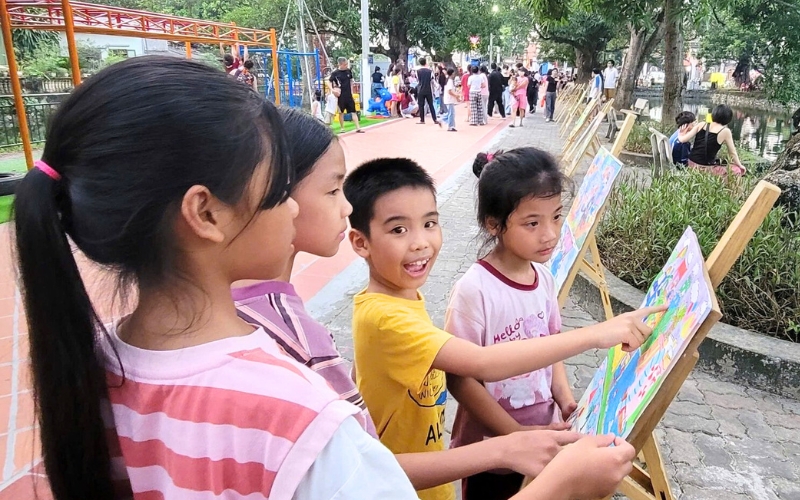 Không gian sân chơi xanh thu hút đông đảo trẻ em tham gia.