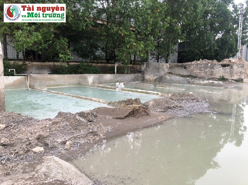 Vị trí bể chứa nước thải sau khi lắng tự nhiên lưu trữ tại đây sẽ được tái sử dụng để rửa xe ô tô và phục vụ sản xuất trộn bê tông thương phẩm