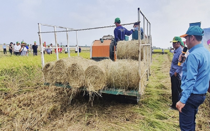 Sử dụng máy cuốn rơm trong mô hình canh tác lúa giảm phát thải