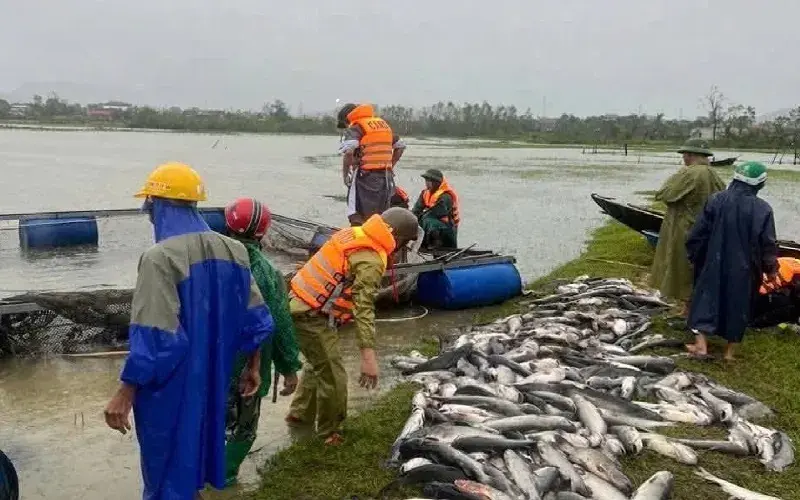 Ghi nhận tại xã Kỳ Hoa (Hà Tĩnh), sau khi bão số 10 đi qua, nhiều hộ nuôi cá lồng bè thiệt hại nặng nề. Theo lãnh đạo UBND xã Kỳ Hoa, do sức gió mạnh, các bè nuôi bị xô dạt, mắc cạn, dẫn đến thiếu nước, khiến cá chết hàng loạt.