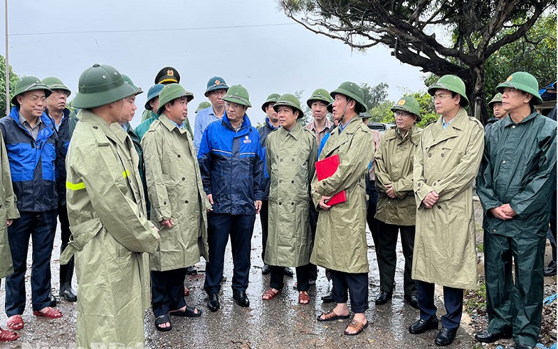 Quyền Bộ trưởng Bộ Nông nghiệp và Môi trường Trần Đức Thắng cùng đoàn công tác kiểm tra thực tế tại một số địa phương bị ảnh hưởng trực tiếp từ cơn báo số 5