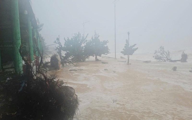 Do ảnh hưởng của bão số 6, sóng biển dữ dội đã đánh mạnh sâu trong đất liền khu vực bãi tắm Thuận An (phường Thuận An, TP. Huế) khiến nước biển tràn ngập những tuyến đường phía trong khu dân cư.