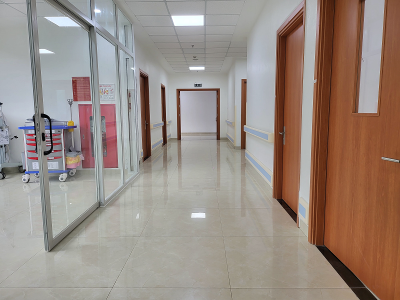 Công tác vệ sinh môi trường, kiểm soát nhiễm khuẩn được triển khai theo quy chuẩn nghiêm ngặt và giám sát chặt chẽ 24/7 được triển khai từ hành lang đến phòng bệnh tại Khoa Tim mạch