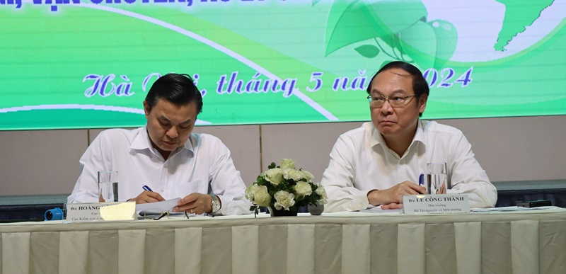 Thứ trưởng Bộ Tài nguyên và Môi trường Lê Công Thành; Cục trưởng Cục Kiểm soát ô nhiễm môi trường Hoàng Văn Thức đồng chủ trị Hội thảo