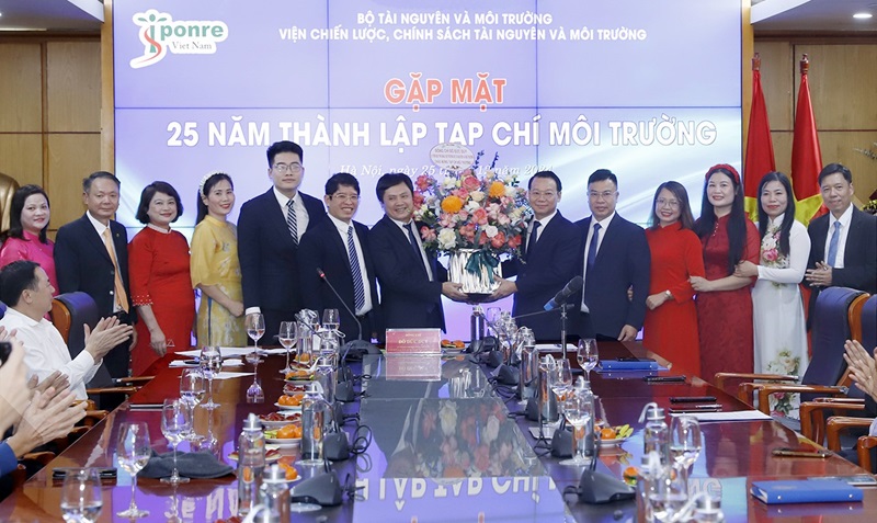 Bộ trưởng Bộ Tài nguyên và Môi trường Đỗ Đức Duy tặng hoa chúc mừng Tạp chí Môi trường