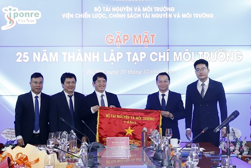 Thay mặt Lãnh đạo Bộ, Bộ trưởng Bộ Tài nguyên và Môi trường Đỗ Đức Duy tặng Cờ thi đua cho Tạp chí Môi trường
