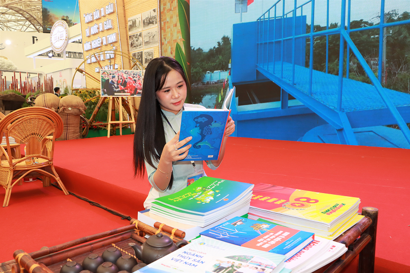 Khách thăm quan tìm hiểu thông tin qua ấn phẩm Tạp chí Nông nghiệp và Môi trường