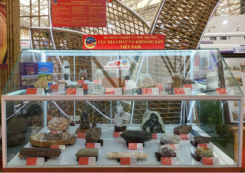 Các sản phẩm trưng bày tại gian hàng của Cục Địa chất và Khoáng sản Việt Nam