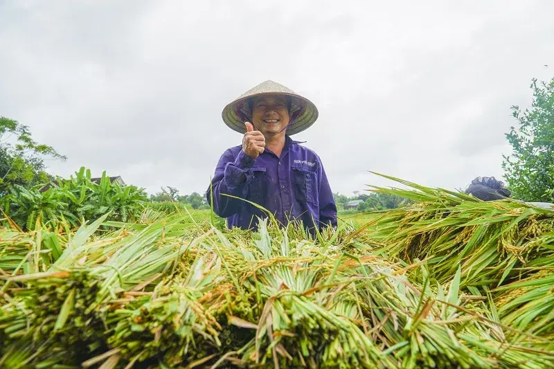 Một chị nông dân trẻ vừa gặt vừa kể: “Có hôm trời mưa, cả gia đình vẫn phải che áo mưa ra đồng. Ngâm mình trong bùn lạnh, tay cứng đờ, nhưng nghĩ đến bão là ai cũng cố. Lúa ướt thì phơi khô lâu hơn, nhưng còn hơn để mất trắng”.