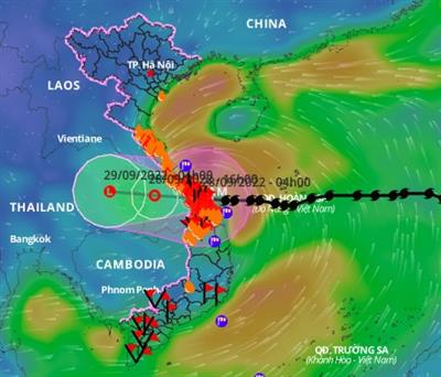 Cập nhật tin bão mới nhất từ Trung tâm Dự báo Khí tượng Thuỷ văn Quốc gia, hồi 7h ngày 28.9, vị trí tâm bão số 4 trên đất liền khu vực Thừa Thiên Huế - Quảng Ngãi. Sức gió mạnh nhất vùng gần tâm bão mạnh cấp 8 (62-74km/giờ), giật cấp 10.