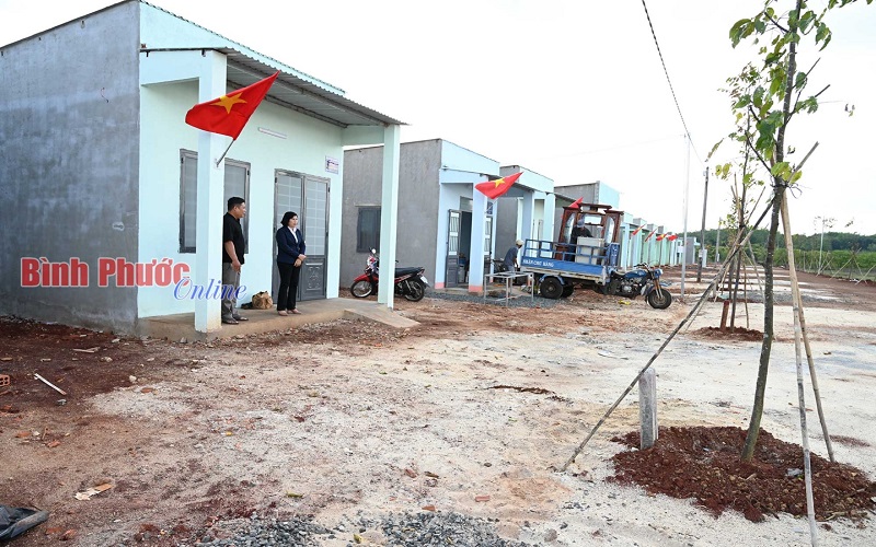 Trong vòng 30 ngày, huyện Bù Đốp hoàn thành việc san lấp mặt bằng và xây mới 17 căn nhà cùng với hạ tầng điện nước, cây xanh để trao tặng hộ nghèo khó khăn về nhà ở. Ảnh: Báo Bình Phước