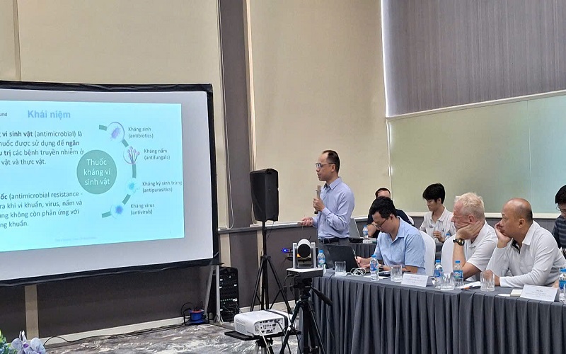 Cũng tại cuộc họp, ông Nguyễn Quốc Cường, đại diện FHI 360 đã chia sẻ về hiện trạng sử dụng, quản lý và ảnh hưởng của kháng thuốc đối với sức khoẻ và môi trường tại Việt Nam. Ông Nguyễn Quốc Cường đã thông tin về một số kết quả giám sát nổi bật (2017-2019). Hầu như tất cả các chủng E. coli (99%; 1029/1042) và Salmonella NTS (96%; 208/216) đều kháng với ít nhất một loại kháng sinh; 94% (981/1042) E. coli và 89% NTS (193/216) là đa kháng thuốc (MDR); Tỷ lệ E. coli và NTS phân lập từ gà kháng với tất cả các nhóm kháng sinh cao hơn so với các chủng phân lập từ lợn. Vì vậy, cần duy trì chương trình giám sát AMR hàng năm cho vật nuôi ở Việt Nam để đánh giá tác động của các biện pháp can thiệp, quan sát xu hướng và thúc đẩy xây dựng chính sách, can thiệp.