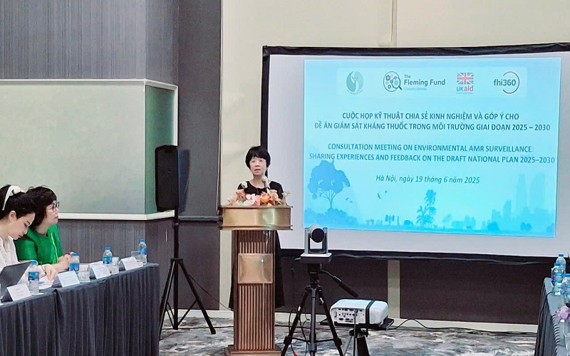 Đại diện Cục Môi trường, ông Phạm Hồng Quân đã giới thiệu kinh nghiệm quốc tế và dự thảo đề án giám sát kháng thuốc trong môi trường tại Việt Nam. Ông Phạm Hồng Quân đã thông tin và giới thiệu cụ thể về một số quốc gia tiên phong trong giám sát kháng kháng sinh (AMR) môi trường. Cụ thể như tại Vương Quốc Anh, Chương trình Pathogen Surveillance in Agriculture, Food and Environment (PATH-SAFE) là sáng kiến quốc gia quy mô lớn, sử dụng công nghệ giải trình tự thế hệ mới để giám sát mầm bệnh, bao gồm vi khuẩn kháng kháng sinh trong môi trường. Vương Quốc Anh đã tích hợp phối hợp liên ngành giữa Defra (Bộ Môi trường, Thực phẩm và Nông thôn), Environment Agency (Cơ quan Môi trường) và UKHSA (Cơ quan An ninh Y tế Anh), tận dụng hạ tầng y tế và môi trường sẵn có. Thực hiện lấy mẫu tại nhiều lưu vực sông, kết hợp nuôi cấy vi sinh vật chỉ thị với giải trình tự toàn bộ bộ gen (WGS) để phát hiện vi khuẩn kháng thuốc và gene kháng sinh. Tạo bản đồ phân bố và cơ sở dữ liệu quốc gia về AMR môi trường. Kết quả đạt được là xác định được các "điểm nóng" AMR trong môi trường, thiết lập mạng lưới cảnh báo sớm, cung cấp bằng chứng khoa học cho việc hoạch định chính sách kiểm soát kháng sinh và kháng thuốc tại Anh.