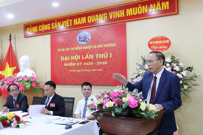 Kết thúc bài phát biểu, thay mặt Ban Thường vụ Đảng ủy Bộ Nông nghiệp và Môi trường, Thứ trưởng đánh giá cao kết quả hoạt động của Tạp chí trong thời gian qua, đồng thời chúc mừng Đại hội Chi bộ Tạp chí Nông nghiệp và Môi trường lần thứ I, nhiệm kỳ 2025 – 2030 đã diễn ra thành công tốt đẹp.