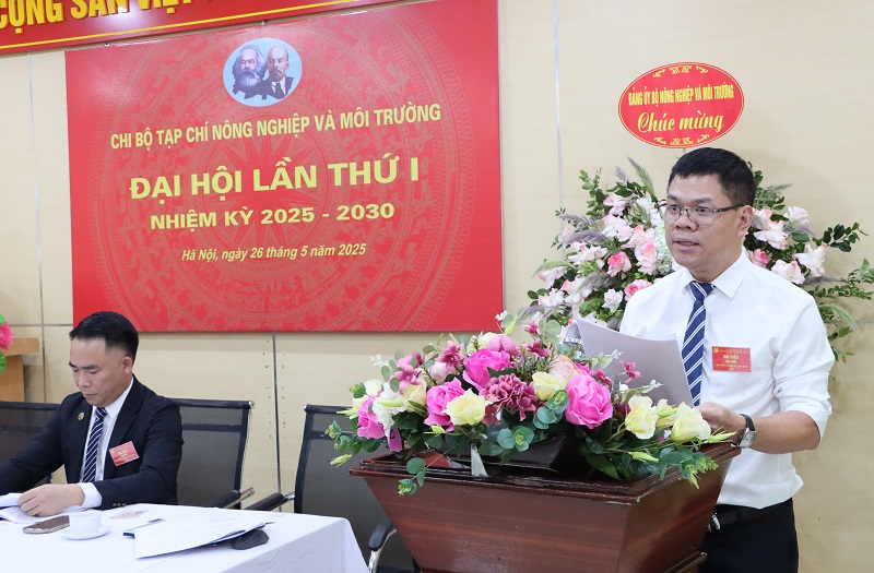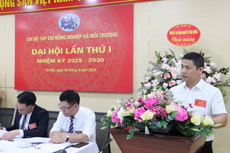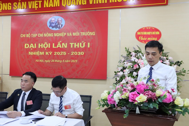 Phát biểu khai mạc Đại hội, TS. Đào Xuân Hưng, Bí thư Chi bộ, Tổng Biên tập Tạp chí Nông nghiệp và Môi trường nhấn mạnh: Đây là Đại hội lần đầu tiên sau khi hợp nhất 2 Tạp chí, Đại hội diễn ra trong bối cảnh đầy ý nghĩa, khi cả nước vừa tổ chức thành công các hoạt động kỷ niệm 50 năm Ngày Giải phóng miền Nam, thống nhất đất nước, kỷ niệm 135 năm Ngày sinh Chủ tịch Hồ Chí Minh vĩ đại và kỷ niệm 100 năm Ngày Báo chí Cách mạng Việt Nam (21/61925 - 21/6/2025)