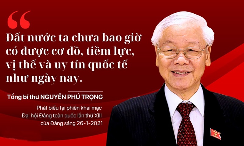 [6]Qua đó một lần nữa chứng minh lời khẳng định của đồng chí Tổng Bí thư Nguyễn Phú Trọng: “Với tất cả sự khiêm tốn, chúng ta vẫn có thể nói rằng: Đất nước ta chưa bao giờ có được cơ đồ, tiềm lực, vị thế và uy tín quốc tế như ngày nay”.