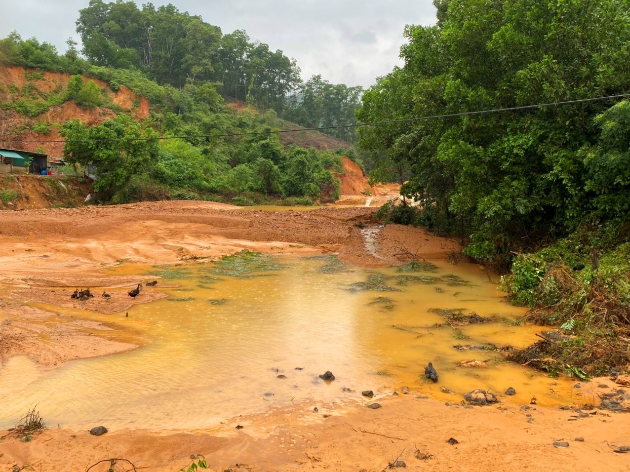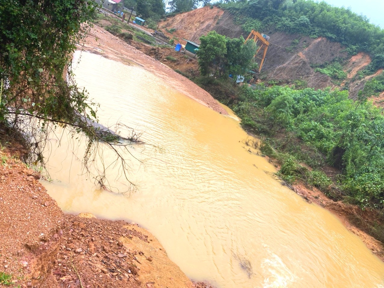 Hiện trường đất đá ngổn ngang, vùi lấp sau sự cố đập Tắt bị vỡ