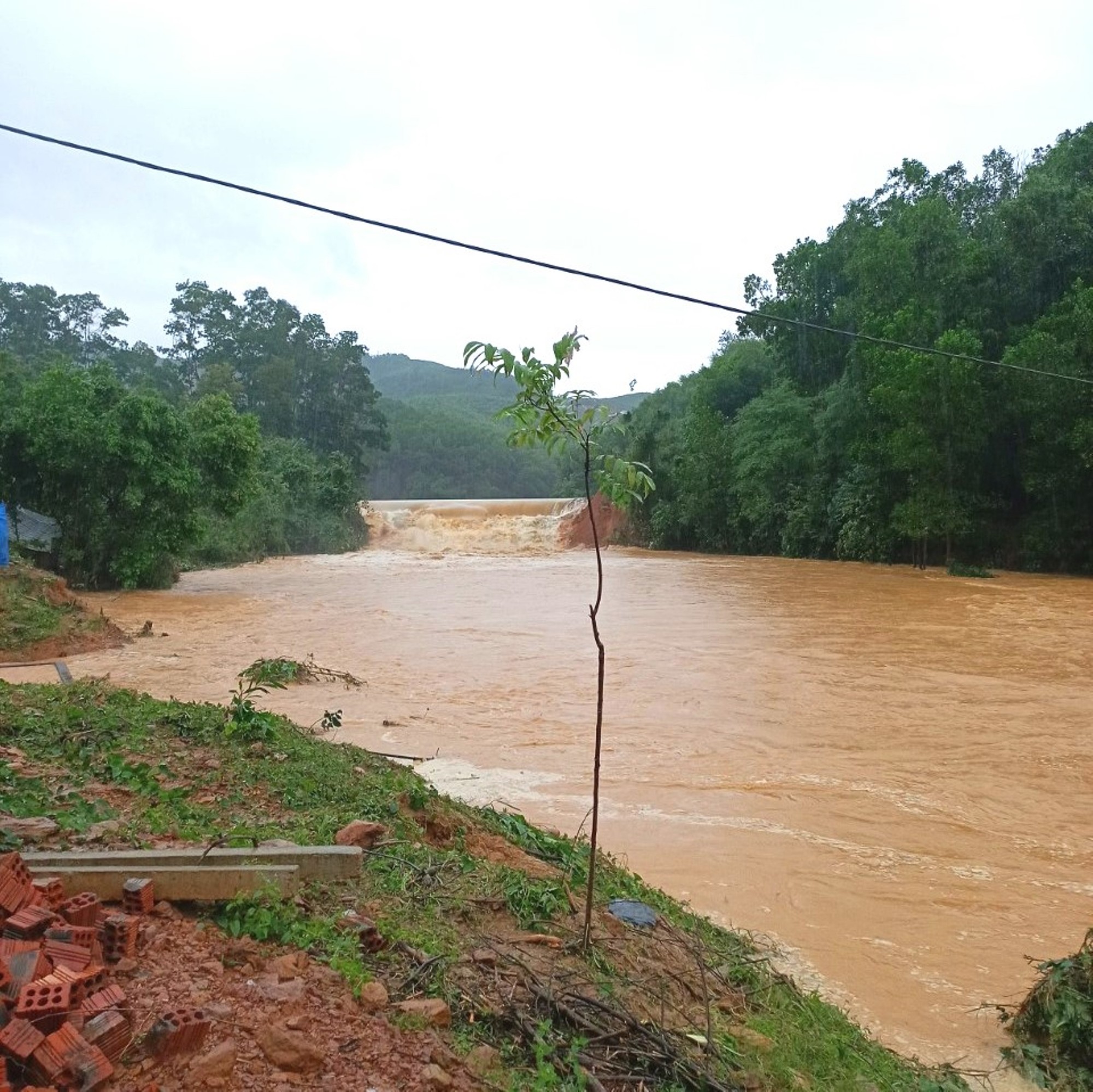 Đập Tắt bị vỡ, nước cuồn cuộn đổ về hạ du