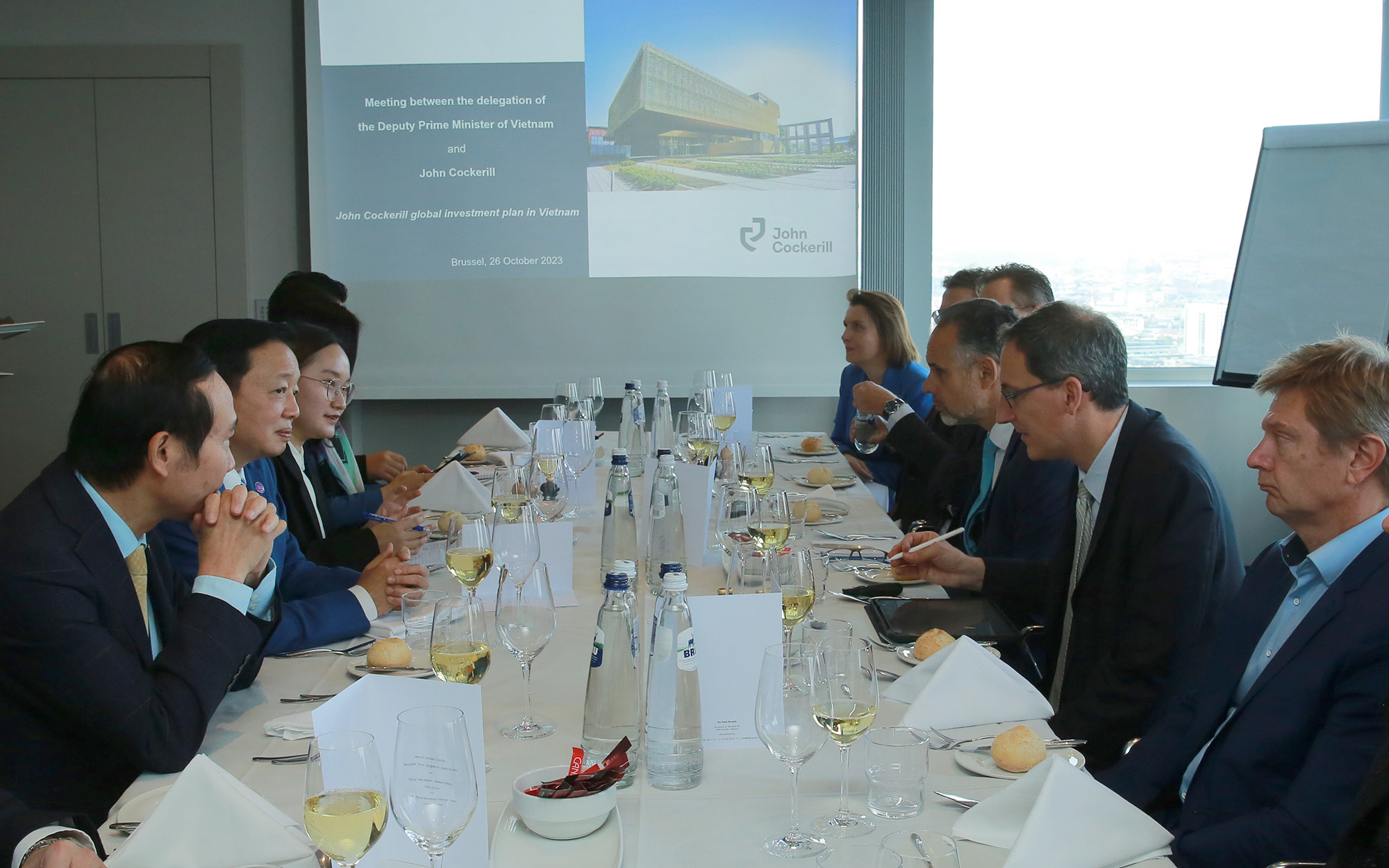 Tại buổi tiếp, Phó Thủ tướng hoan nghênh cam kết đầu tư lâu dài tại Việt Nam của John Cockerill trong lĩnh vực hết sức quan trọng như năng lượng hydrogen xanh. Phó Thủ tướng đánh giá cao John Cockerill đang khẩn trương triển khai các dự định đầu tư của Tập đoàn và đề nghị phối hợp chặt chẽ với các bộ, ngành Việt Nam trong quá trình thực hiện.