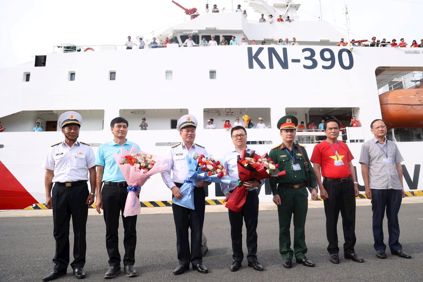 Đoàn công tác số 23 nhận hoa chúc mừng của Quân chủng Hải quân vùng 4 trước khi bắt đầu hải trình đi thăm quần đảo Trường Sa