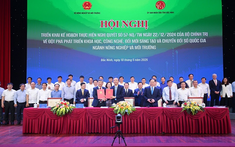 Một điểm nhấn quan trọng trong khuôn khổ Hội nghị triển khai Kế hoạch thực hiện Nghị quyết số 57-NQ/TW là lễ ký kết các chương trình phối hợp và hợp tác giữa Bộ Nông nghiệp và Môi trường với các tổ chức khoa học - kỹ thuật, hiệp hội nghề nghiệp và doanh nghiệp tiên phong trong lĩnh vực nông nghiệp và môi trường. Các thỏa thuận được ký kết nhằm đẩy mạnh nghiên cứu, phát triển và ứng dụng khoa học công nghệ, góp phần tạo bước đột phá về năng suất, chất lượng và giá trị gia tăng cho ngành nông nghiệp, đồng thời nâng cao hiệu quả quản lý và bảo vệ môi trường trong bối cảnh chuyển đổi số quốc gia.