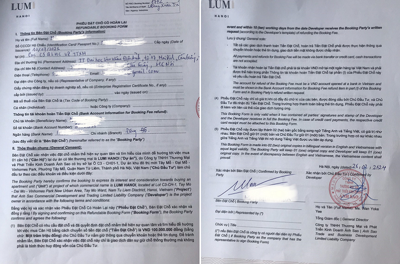 Phiếu đặt chỗ có hoàn lại của dự án Lumi Hanoi