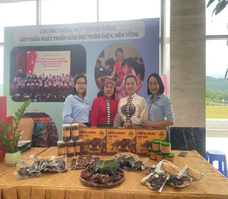Chị Lèo Thị Thuý (đứng giữa) - người đạt giải tại Cuộc thi “Thúc đẩy sáng kiến kinh doanh bền vững do nữ làm chủ 2025”