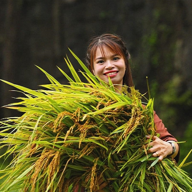 Nét duyên của đồng quê hiện lên mộc mạc mà cuốn hút qua dáng hình cô gái giữa mùa vàng Tam Cốc. Không cần cầu kỳ, chỉ một bó lúa trong tay cũng đủ kể nên câu chuyện của thiên nhiên, của mùa và của lòng người miền núi sông.