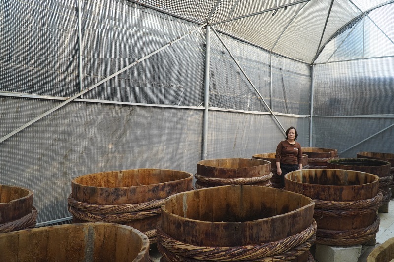 Chị Nguyễn Thị Nhung (vợ anh Nguyễn Thế Hoàng) tại xưởng làm mắm của gia đình