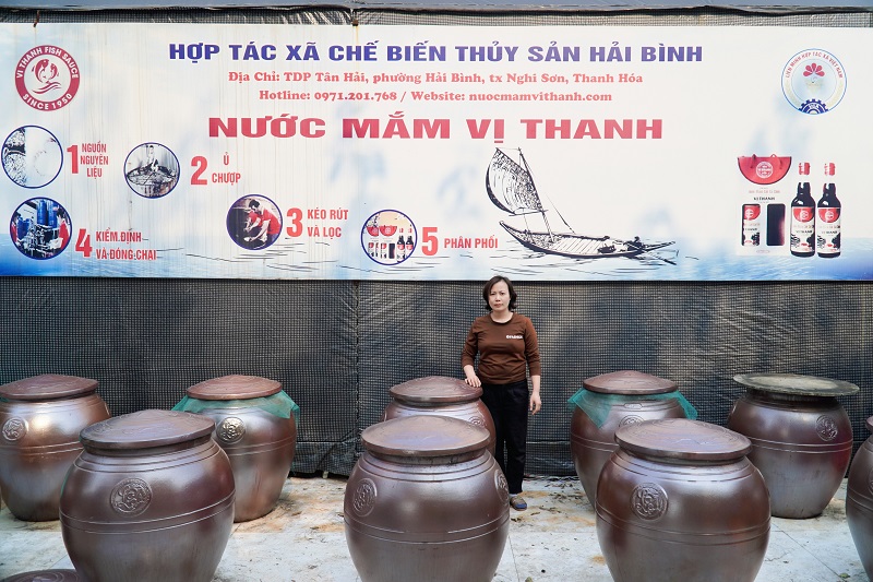 Hiện nay, anh Hoàng và chị Nhung không chỉ trực tiếp vận hành xưởng sản xuất nước mắm, mà còn điều hành cửa hàng trưng bày giới thiệu và bán sản phẩm OCOP tỉnh Thanh Hóa tại tổ dân phố Tiền Phong, phường Hải Bình. Bên cạnh việc giới thiệu các sản phẩm OCOP khác của địa phương, mục tiêu lớn nhất của cửa hàng là phát triển thị trường bán lẻ cho nước mắm và các loại mắm truyền thống Hải Bình.