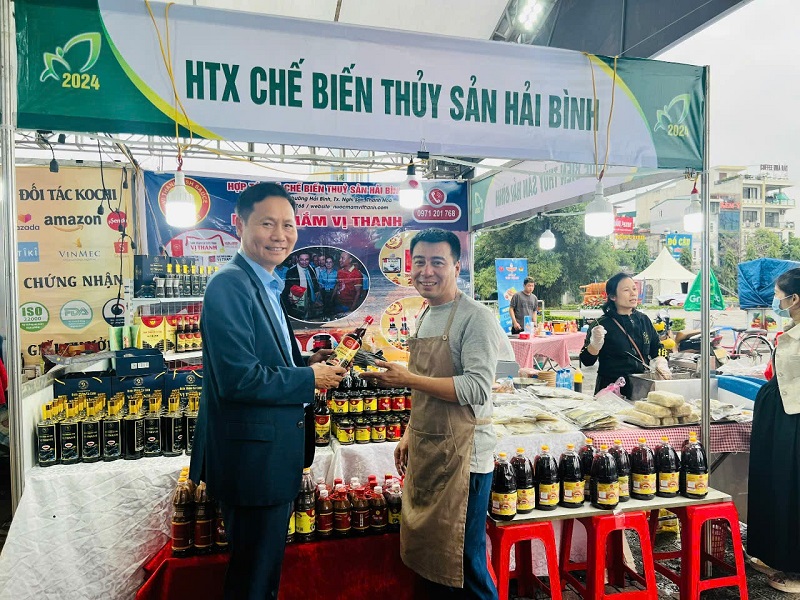 Không dừng lại ở việc sản xuất, anh Hoàng và chị Nhung không quản ngại đem sản phẩm của mình đi khắp các hội chợ, triển lãm trong và ngoài tỉnh, từng bước giới thiệu, quảng bá nước mắm Vị Thanh tới đông đảo người tiêu dùng. Bằng chất lượng sản phẩm tự nhiên, nguyên chất, nước mắm Vị Thanh dần chiếm được lòng tin khách hàng.