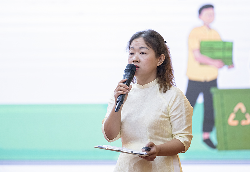Bà Hoàng Ngọc Tường Vân, Quản lý dự án, Tổ chức Quốc tế về bảo tồn thiên nhiên Việt Nam (WWF) chia sẻ về kinh nghiệm nhân rộng mô hình tái chế trong trường học