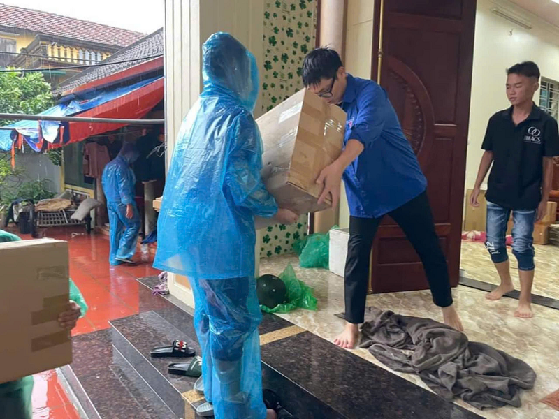 Ngay trong chiều nay 11/9, Huyện Đoàn Thường Tín đã huy động lực lượng hàng trăm thanh niên đến xã Tự Nhiên để hỗ trợ di chuyển người và tài sản tránh lũ, đến khu vực an toàn.