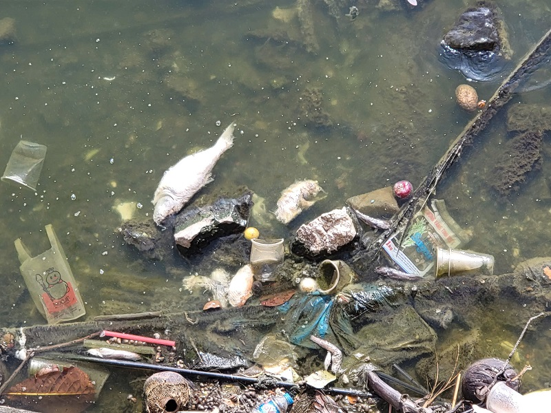 Một số người dân thiếu ý thức còn vứt xác động vật xuống hồ, tràn ngập rác thải sinh hoạt dưới lòng hồ xuất phát từ thói quen