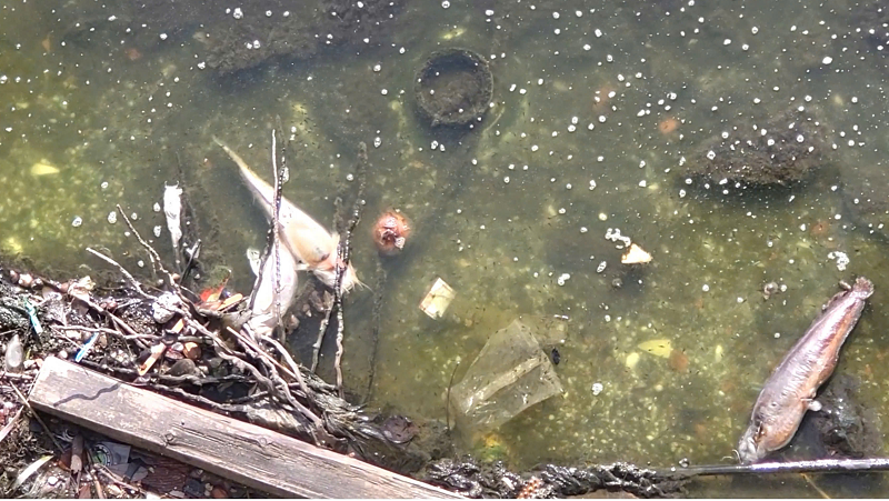 Mùi hôi tanh nồng nặc từ những xác cá chết, rác thải dưới lòng hồ gây ám ảnh bởi mùi hôi tanh xộc thẳng vào mũi người đi đường