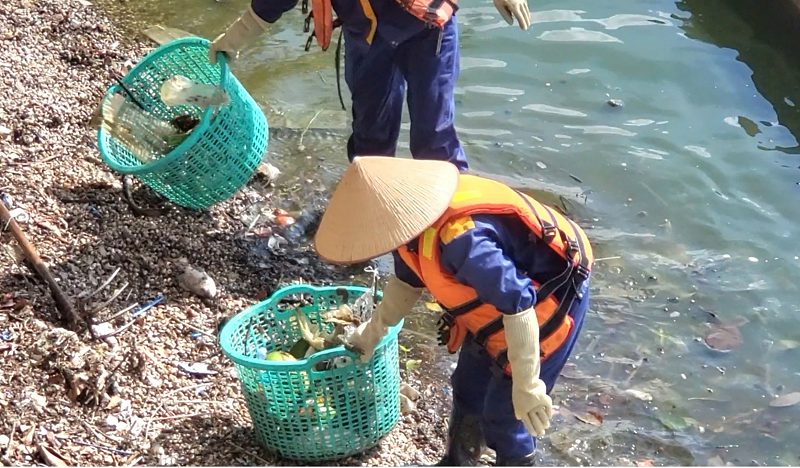 Khi phóng viên ghi nhận đến đầu phố Vệ Hồ, gặp nhóm người thu gom rác bằng thuyền và cảnh tượng trước mắt đã được ghi lại về việc thiếu trách nhiệm không nhặt xác cá chết mà lấy chân vùi bùn, đất lên xác cá (chi tiết có trong Video) hành động này đã gây nên ô nhiễm môi trường nghiêm trọng từ chính họ gây ra.