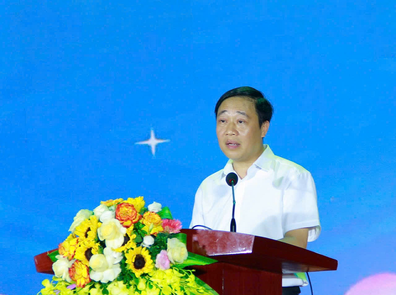 Ông Ngọ Văn Ngôn, Phó Chánh Văn phòng chuyên trách Văn phòng Điều phối chương trình xây dựng nông thôn mới Thành phố Hà Nội phát biểu tại lễ khai mạc