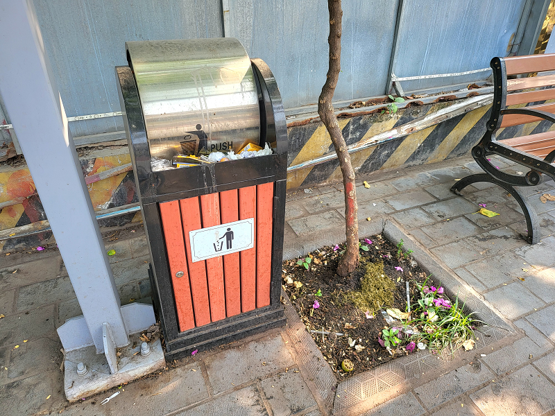 Thùng rác tại khu vực giàn hoa giấy được người dân kinh doanh tự ý bịt túi nilon với mục đích không cho bỏ rác đúng nơi quy định
