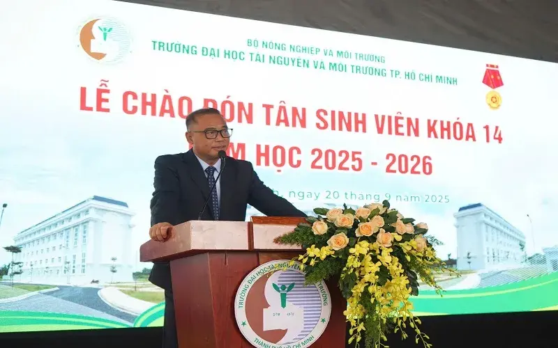 Sáng 20/9/2025, trong không khí trang trọng và đầy cảm xúc, Trường Đại học Tài nguyên và Môi trường TP. Hồ Chí Minh (HCMUNRE) đã long trọng tổ chức Lễ chào đón Tân sinh viên Khóa 14. Sự kiện không chỉ đánh dấu một cột mốc quan trọng trên hành trình học tập của hàng nghìn tân sinh viên, mà còn khẳng định uy tín, vị thế của HCMUNRE - ngôi trường gắn bó mật thiết với sự nghiệp đào tạo, nghiên cứu và phát triển nguồn nhân lực trong lĩnh vực tài nguyên và môi trường cho cả nước.