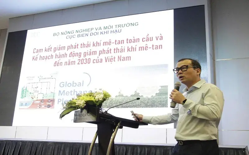 Tại Hội thảo TS. Lương Quang Huy - Trưởng phòng Quản lý phát thải khí nhà kính và Bảo vệ tầng ô-dôn, Cục Biến đổi khí hậu đã chia sẻ khái quát những thông tin liên quan đến Cam kết giảm phát thải mê-tan toàn cầu và tại Việt Nam. Theo TS. Huy, cam kết toàn cầu giảm phát thải khí mê-tan được khởi xướng tại COP26 vào năm 2021, cam kết giảm 30% lượng khí mê-tan toàn cầu so với mức năm 2020 vào năm 2030 đã thu hút sự tham gia của hơn 150 quốc gia. Đây là một sáng kiến quan trọng nhằm thúc đẩy các biện pháp giảm phát thải trong các lĩnh vực trọng yếu như nông nghiệp, năng lượng và quản lý chất thải".