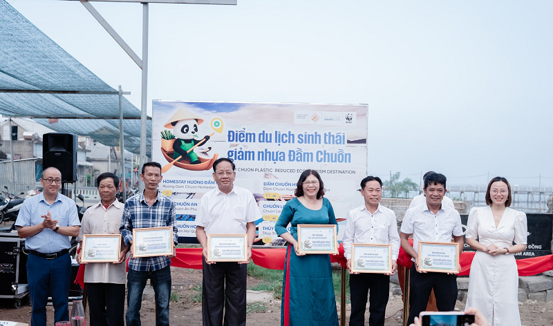Lễ ra mắt điểm du lịch sinh thái giảm nhựa tại Đầm Chuồn (Ảnh: WWF-Việt Nam)