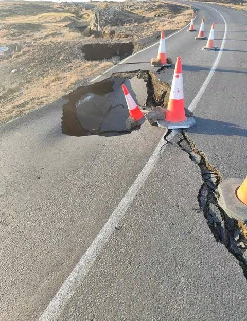 Hình ảnh các vết nứt xuất hiện trên một con đường do hoạt động của núi lửa, gần Grindavik, Iceland ngày 13/11. Ảnh: Reuters