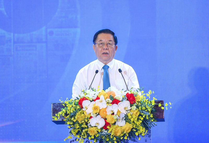 Đồng chí Nguyễn Trọng Nghĩa, Ủy viên Bộ Chính trị, Bí thư Trung ương Đảng, Trưởng Ban Tuyên giáo và Dân vận Trung ương phát biểu tại lễ khai mạc Hội báo toàn quốc 2025