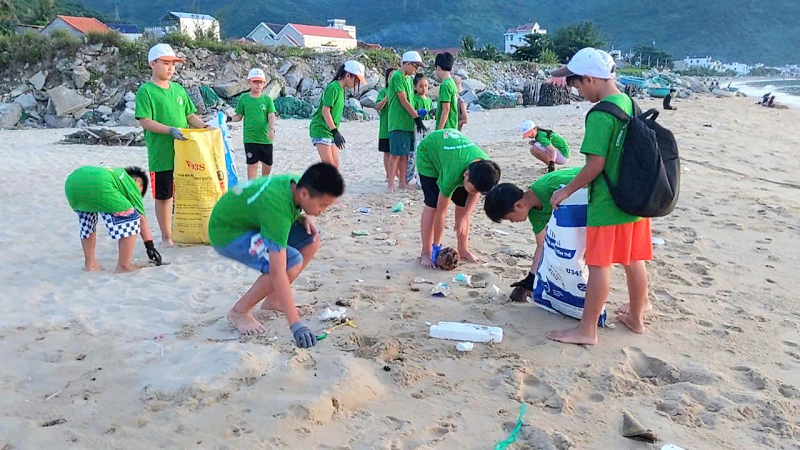 Nhóm Môi trường xanh Đại Lãnh tổ chức nhặt rác, làm sạch bãi biển do thầy giáo Nguyễn Thanh Phong, giáo viên Trường Tiểu học Đại Lãnh thành lập