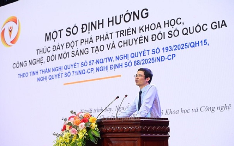 Tại Hội nghị, đại diện Bộ Khoa học và Công nghệ, ông Nguyễn Phú Tiến - Phó Cục trưởng Cục Chuyển đổi số quốc gia đã đưa ra một số định hướng thúc đẩy phát triển khoa học, công nghệ, đổi mới sáng tạo và chuyển đổi số quốc gia theo tinh thần Nghị quyết số 57 -NQ/TW, Nghị quyết số 193/2025/QH15, Nghị Quyết số 71/NQ-CP, Nghị định số 88/2025/NĐ-CP.