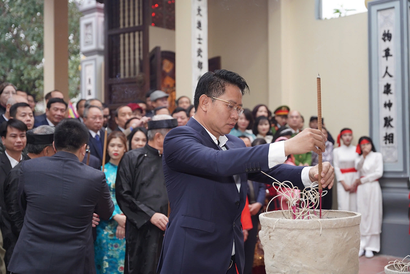 Ông Nguyễn Thanh Xuân, Thành ủy viên, Bí thư Quận ủy Hà Đông cùng các lãnh đạo quận đến dâng hương tại Lễ hội