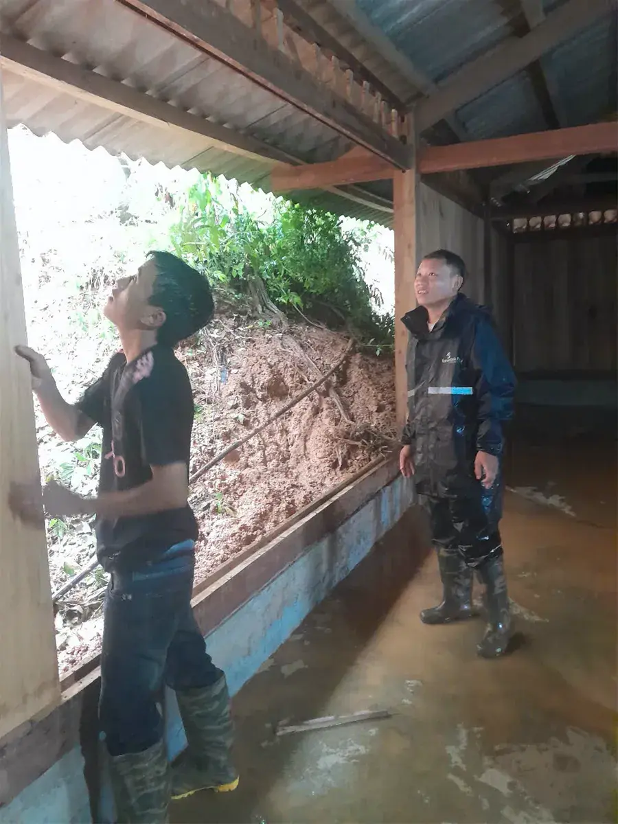 Tại xã Chiềng Ken, thôn chiềng 1+2 hiện đang thi công Kè, dọ đá bị sập trôi do nước lũ, chiều dài khoảng 200m. Trường Mầm Non Thẳm Dương bị sạt taluy âm có nguy cơ ảnh hưởng đến bếp ăn học sinh, nhà vệ sinh, 2 phòng chức năng và 03 hộ dân ở phía dưới.
