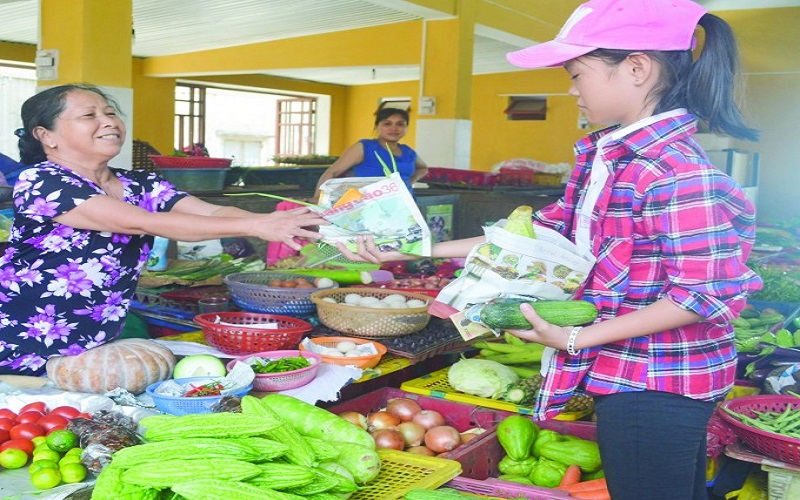 Tiểu thương ở các chợ tại Cù Lao Chàm sử dụng túi giấy do các em học sinh gấp tặng thay cho việc sử dụng túi nilong