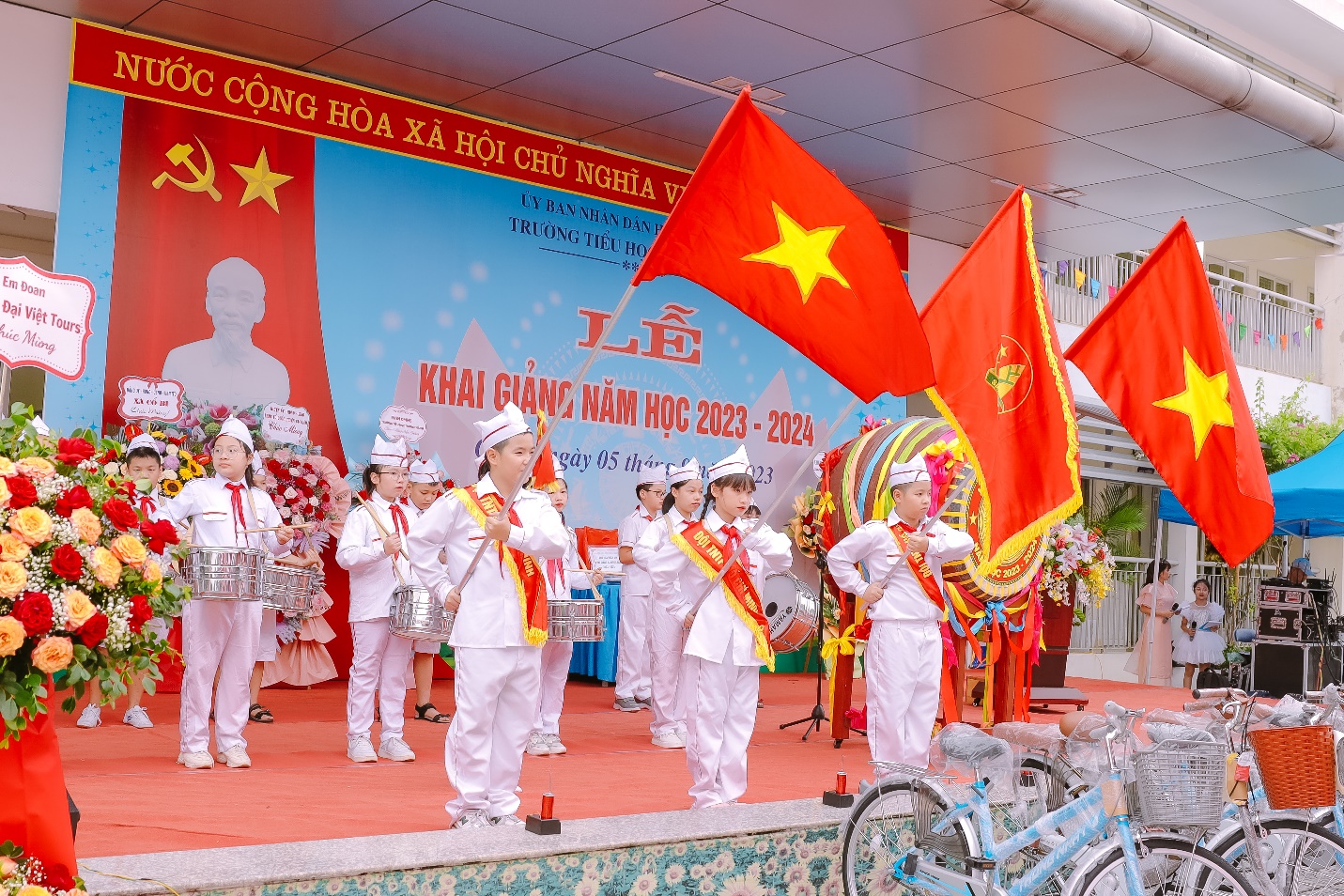 Ngồi sau hàng ghế đại biểu, dự Lễ khai giảng năm học mới 2023-2024, cùng con và các thầy, trò trường Tiểu học Trung Thành, huyện Gia Lâm, Hà Nội ngắm nhìn các con đứng nghiêm trang trong bộ đồng phục học sinh khi nghe cô Hiệu trưởng Ngô Thị Hường đọc diễn văn khai giảng và tiến hành nghi thức đánh trống khai trường rộn ràng, phấn khởi và đầy tươi vui, chính thức đánh dấu sự bắt đầu của năm học mới, những lá cờ đỏ sao vàng cùng những bông hoa màu sắc bay phấp phới trong tay các con như chứa đựng đầy sự hân hoan, chào đón năm học mới với những niềm tin, nghị lực phấn đấu trong tương lai, tôi đã rất xúc động, bồi hồi đến lạ và thấy như sống lại những ngày khai giảng của chính mình của nhiều năm về trước.