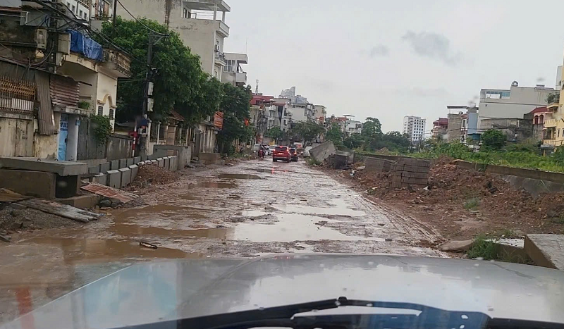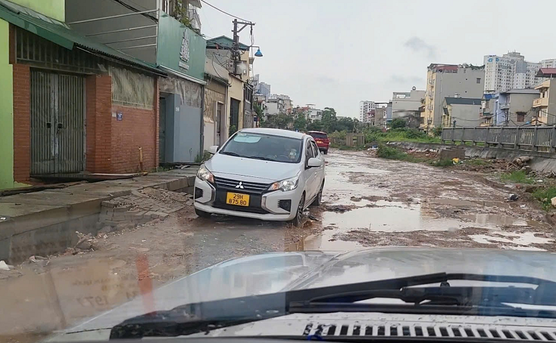 Một đoạn đường đang trở thành “điểm đen” về hạ tầng đô thị, sau cơn mưa, con đường biến thành bãi lầy lội, nước đọng và bùn đất khiến việc đi lại vô cùng khó khăn